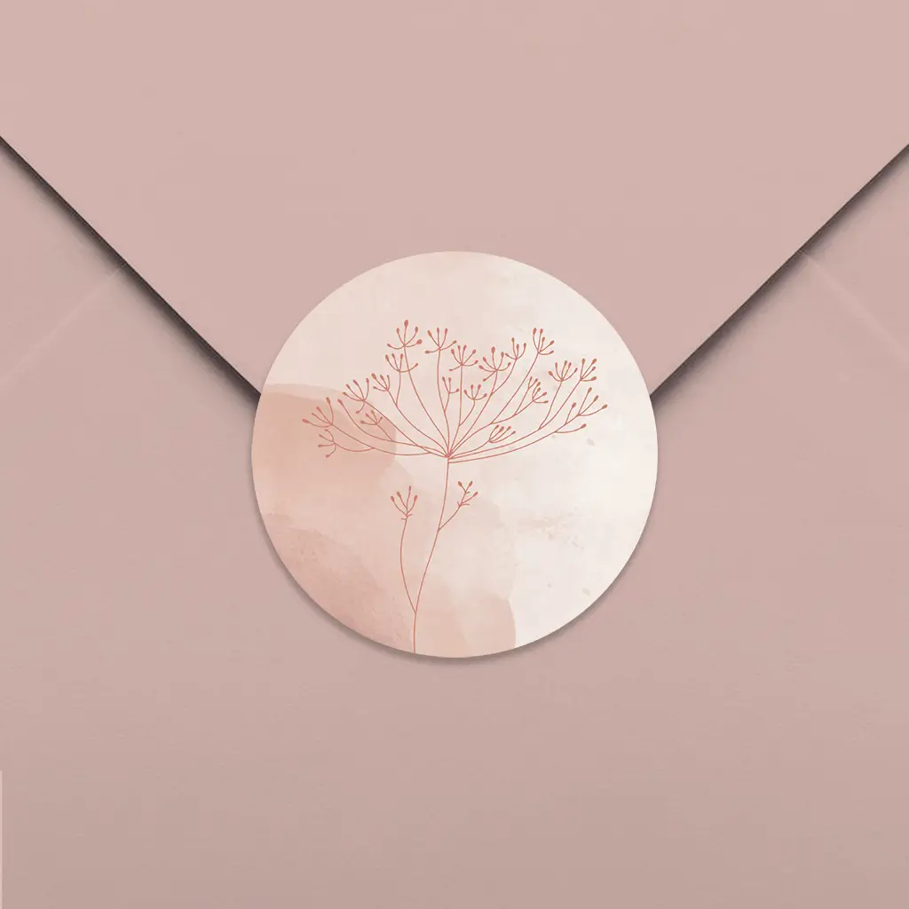 Sluitsticker met roze watercolour en takje - per 25 stuks