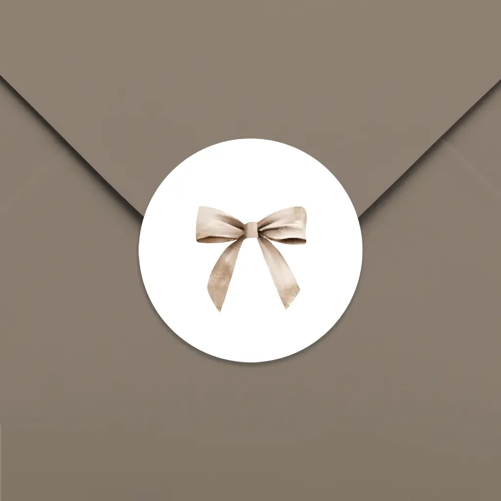 Wat een lieve sluitsticker passend bij het geboortekaartje. Het ontwerp heeft een lichte achtergrond met daarop een klein bruin strikje. Pas het ontwerp naar wens aan in onze online editor.