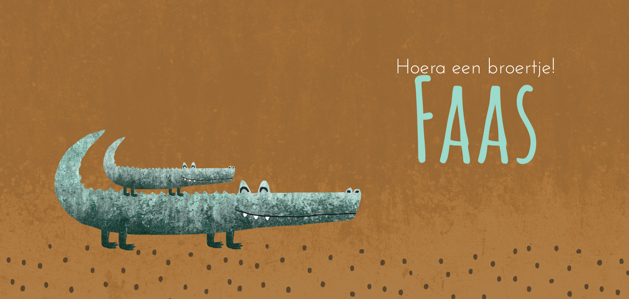 Wat een leuk kaartje voor een tweede kindje! Deze kleurencombinatie is helemaal hip. En wil je toch liever een andere kleur, dan pas je hem eenvoudig aan met de editor. De vrolijke krokodillen op dit kaartje geven hem een stoere look!