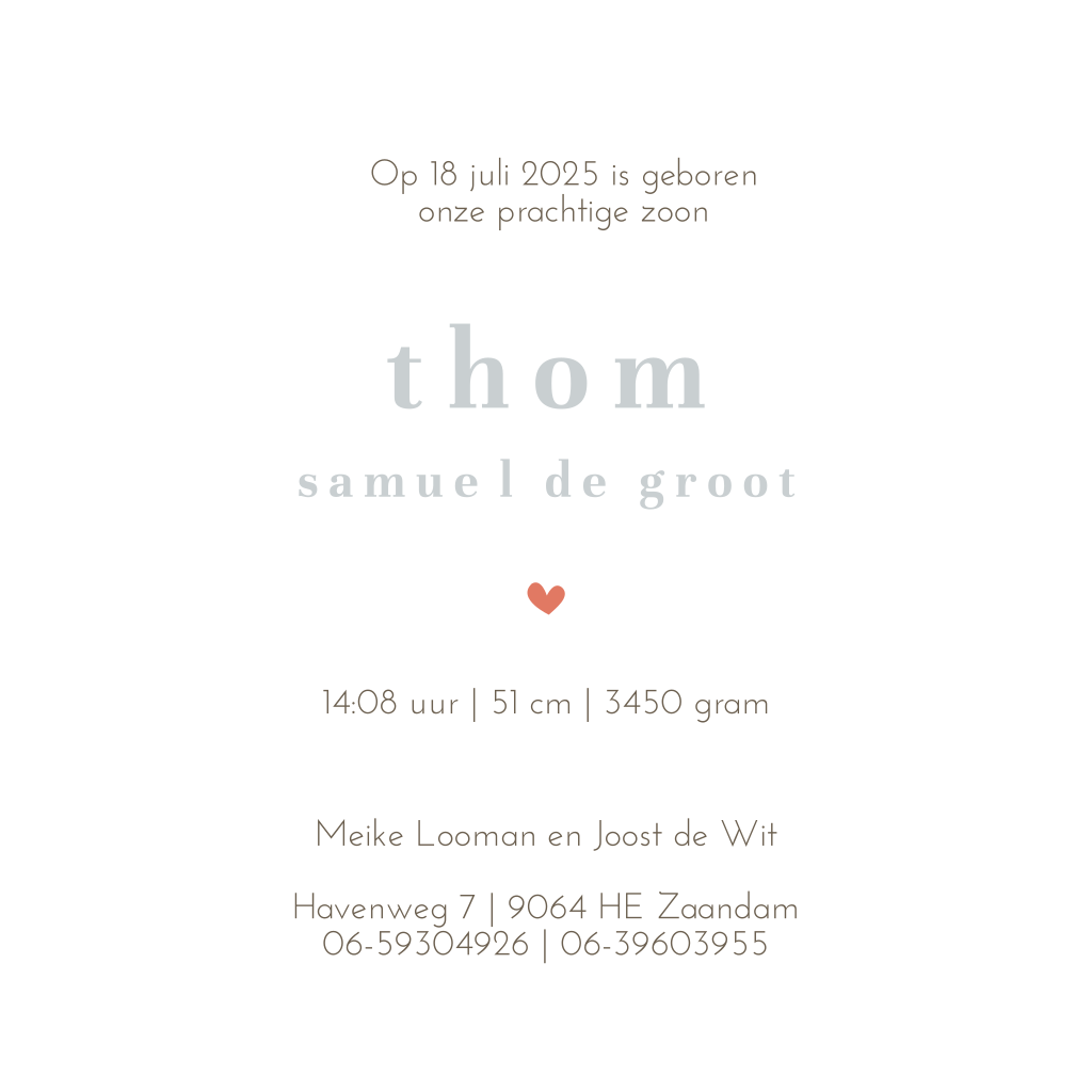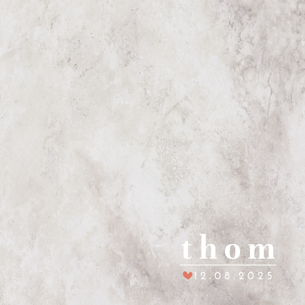 Hip en minimalistisch geboortekaartje voor de geboorteaankondiging van je zoon. Met de look van marmer op de achtergrond past dit geboortekaartje helemaal in de huidige trend!