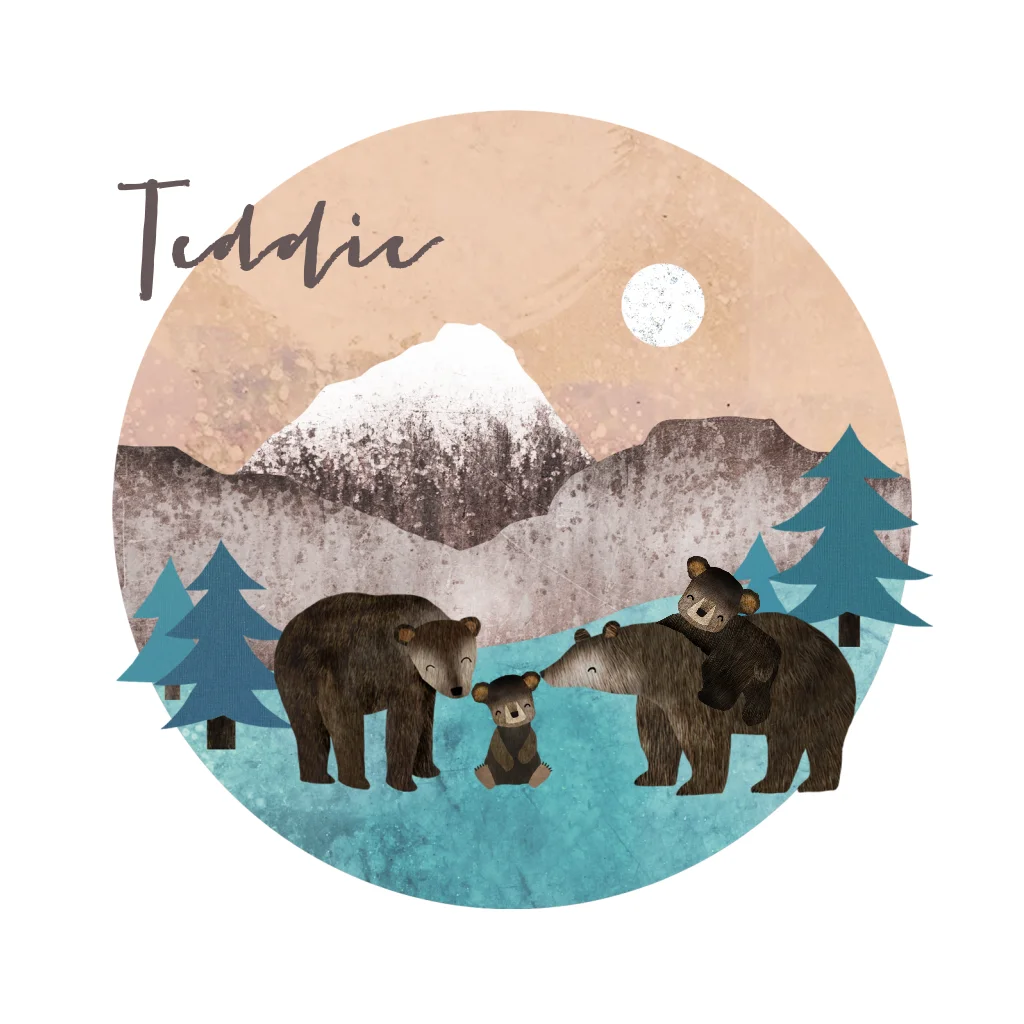 Geboortekaartje met beren gezin in de bergen voor jongen