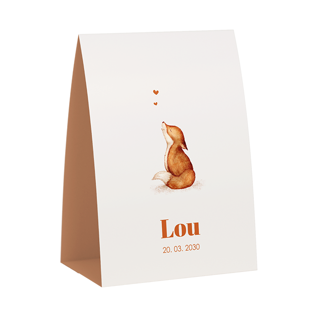 Wat een stijlvol tentkaart geboortekaartje voor jullie kindje. Dit kaartje heeft een lieve illustratie van een vosje met daaromheen verschillende hoogglans details. Personaliseer dit geboortekaartje gemakkelijk in de online editor.