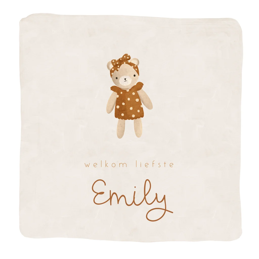 Een beige tuinbord. Het bord heeft een illustratie van een knuffeltje. Pas het ontwerp naar wens zelf aan.
