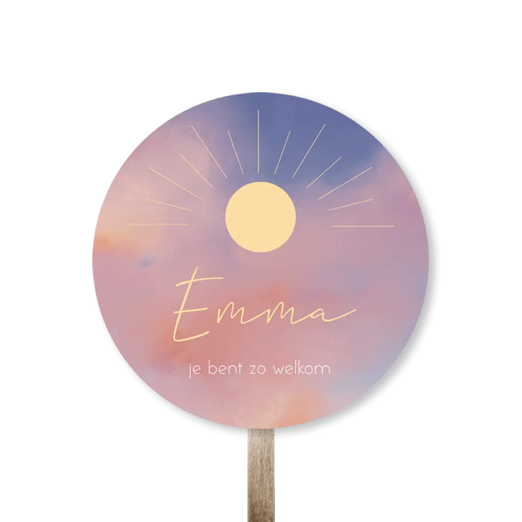 Jullie kleintje is geboren en de hele buurt mag het weten! Dit tuinbord heeft een kleurrijke lucht met daarop de illustratie van een zon. De naam van jullie kleintje maakt dit bord helemaal af! Het bord is naar wens aan te passen in onze online editor.