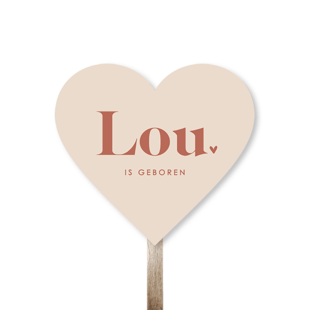 Een stijlvol en uniek tuinbord in hartvorm. Het bord heeft een beige achtergrond met daarop roestkleur letters. Pas het ontwerp naar wens zelf aan.