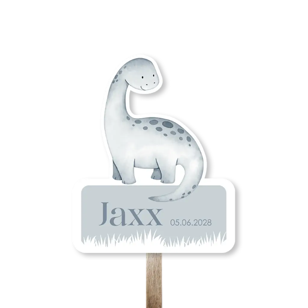 Een hip en vrolijk tuinbord om de geboorte van jouw kindje aan te kondigen. Het bord heeft een leuke illustratie van een blauwe dino. Onder de dino is er ruimte voor de naam en geboortedatum. Het bord is gemakkelijk aan te passen in de online editor. Het tuinbord wordt geleverd zonder (houten) paal en bevestigingsmateriaal. Deze kun je zelf vinden bij de bouwmarkt. Je bevestigt het bord met schroeven aan de paal. Advies: Als het hard waait, zet het bord dan even binnen.