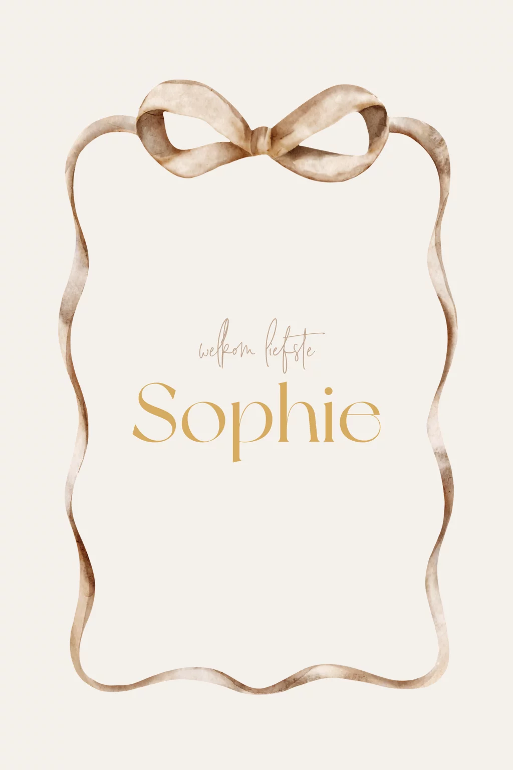 Een stijlvol tuinbord om de geboorte van je kindje aan te kondigen. Het bord heeft een bruine watercolour illustratie van een strik. In het midden lees je de naam. Pas het ontwerp naar wens aan in onze online editor.
