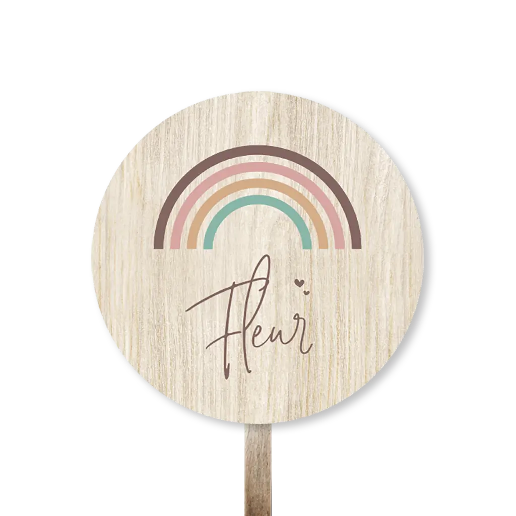 Kondig de geboorte van jullie kleintje aan met dit stoere tuinbord in de vorm van een cirkel. Het bord heeft een hout-look met regenboog. Het bord is gemakkelijk aan te passen in de online editor.