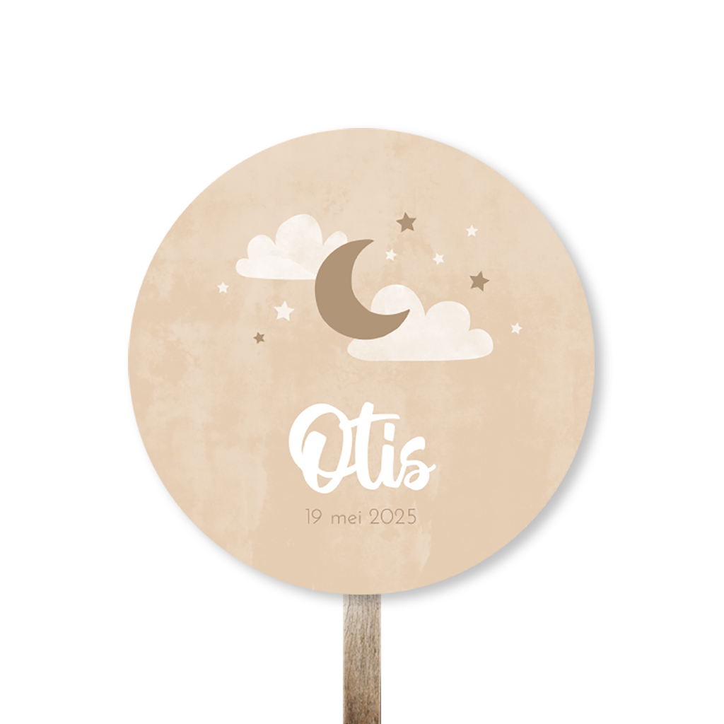 Kondig de geboorte van jullie kleintje aan met dit stoere tuinbord in de vorm van een cirkel. Het bord heeft een velvet-look achtergrond met illustraties van een maan, sterren en wolken. Het bord is gemakkelijk aan te passen in de online editor.