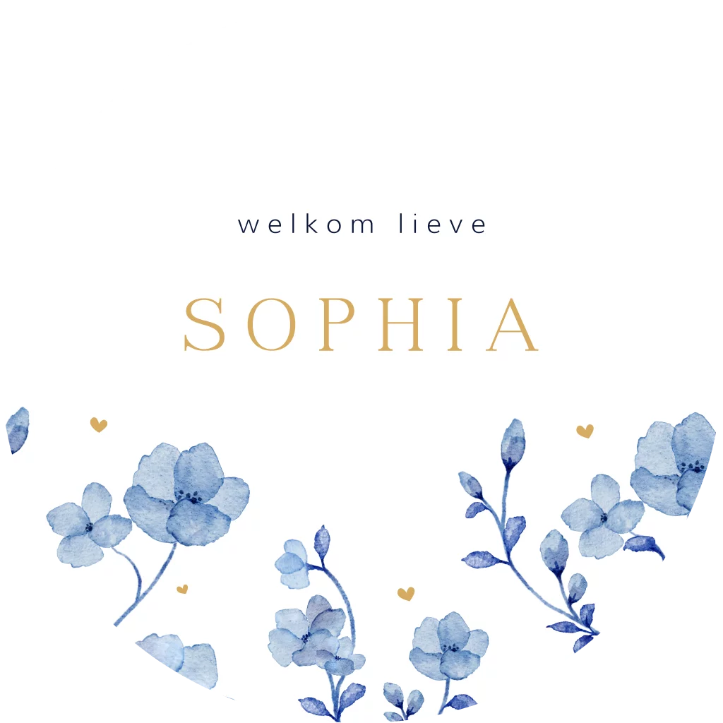 Kondig de geboorte van jullie kleintje aan met dit sierlijke tuinbord in de vorm van een cirkel. Het bord heeft een witte achtergrond met delfts blauwe watercolour illustraties van bloemen en kan gemakkelijk aangepast worden in de online editor.