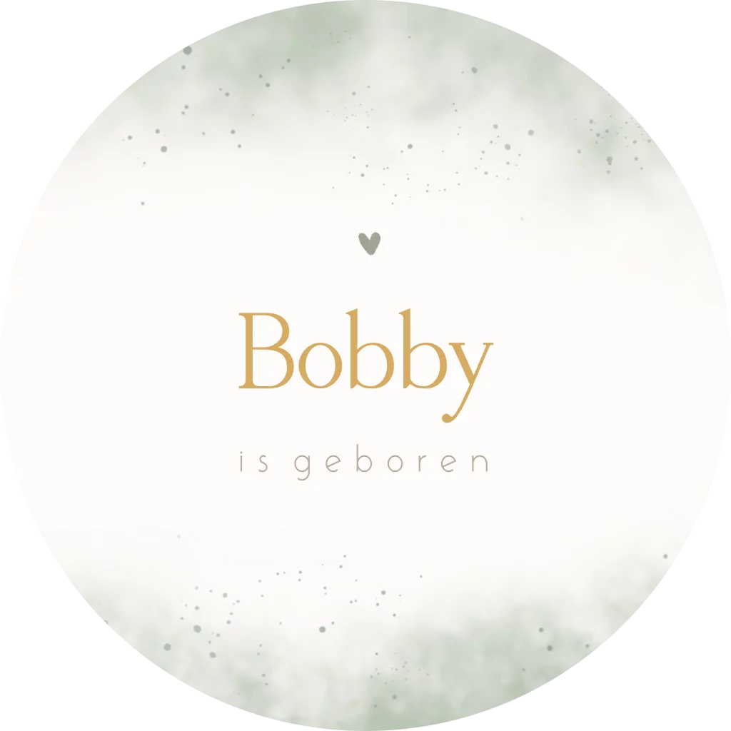 Kondig de geboorte van jullie kleintje aan met dit lieve tuinbord in de vorm van een cirkel. Het kaartje heeft een dromerige oudgroene achtergrond en het kleine hartje zorgt voor een lief accent. Pas het ontwerp naar wens aan in onze online editor.
