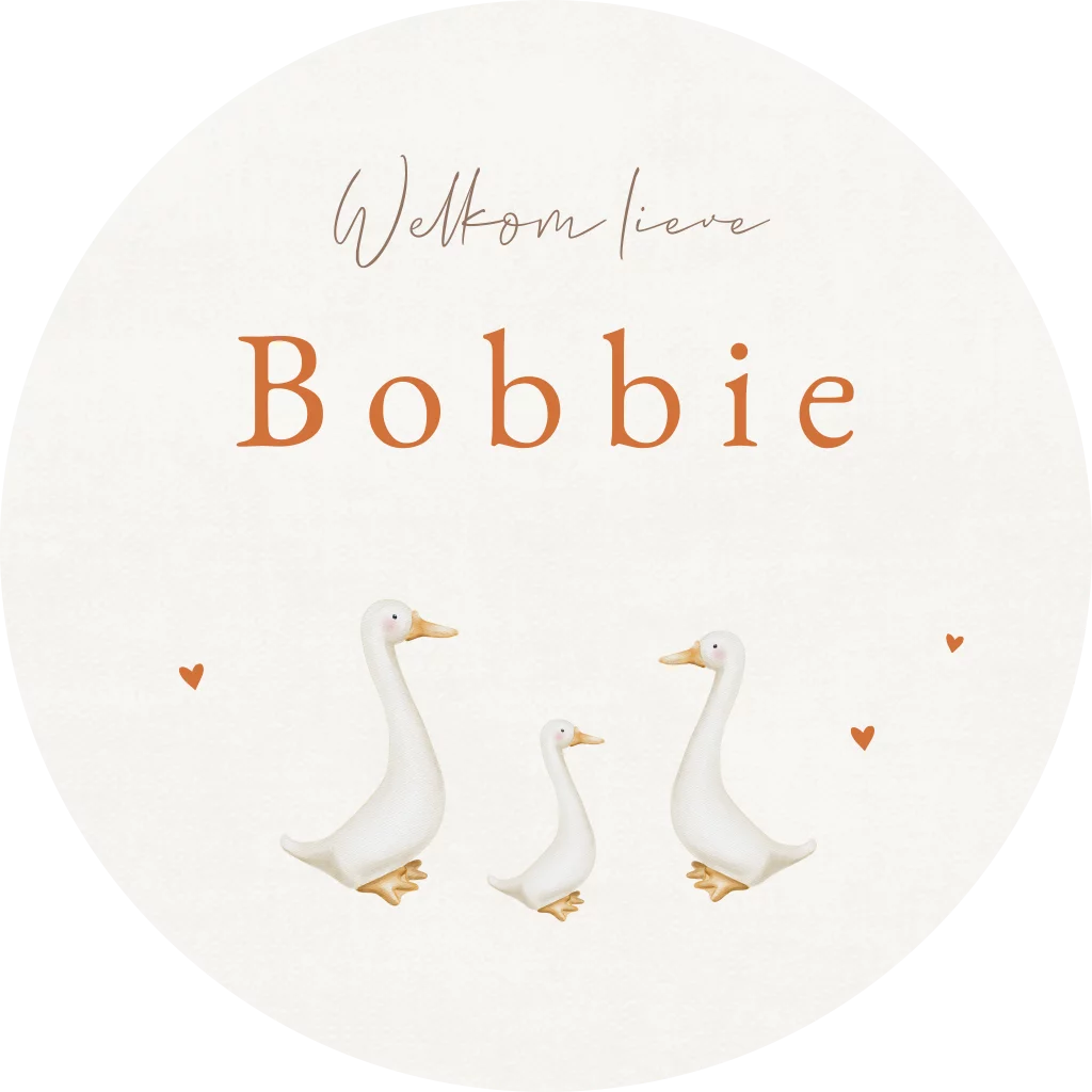 Je kleintje is geboren en dat mag de hele buurt weten! Dit tuinbord heeft een lichte achtergrond met de illustraties van drie ganzen en kleine hartjes. Het bord kan naar wens aangepast worden in onze online editor.