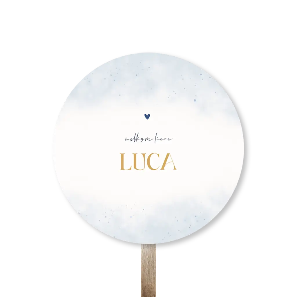Kondig de geboorte van jullie kleintje aan met dit hippe tuinbord in de vorm van een cirkel. Het design heeft een blauwe watercolour achtergrond en in het midden staat de naam van jouw kleintje. Het bord is gemakkelijk aan te passen in de online editor. Het tuinbord wordt geleverd zonder (houten) paal en bevestigingsmateriaal. Deze kun je zelf vinden bij de bouwmarkt. Je bevestigt het bord met schroeven aan de paal. Tip: Als het hard waait, zet het bord dan even binnen.