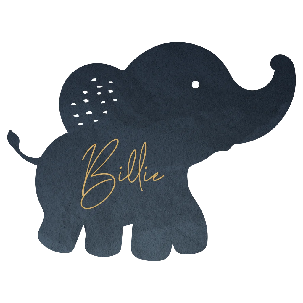 Kondig de geboorte van jullie zoon of dochter aan met dit stoere tuinbord in de vorm van een olifantje. De naam op de donkerblauwe achtergrond pas je eenvoudig zelf aan in de editor.