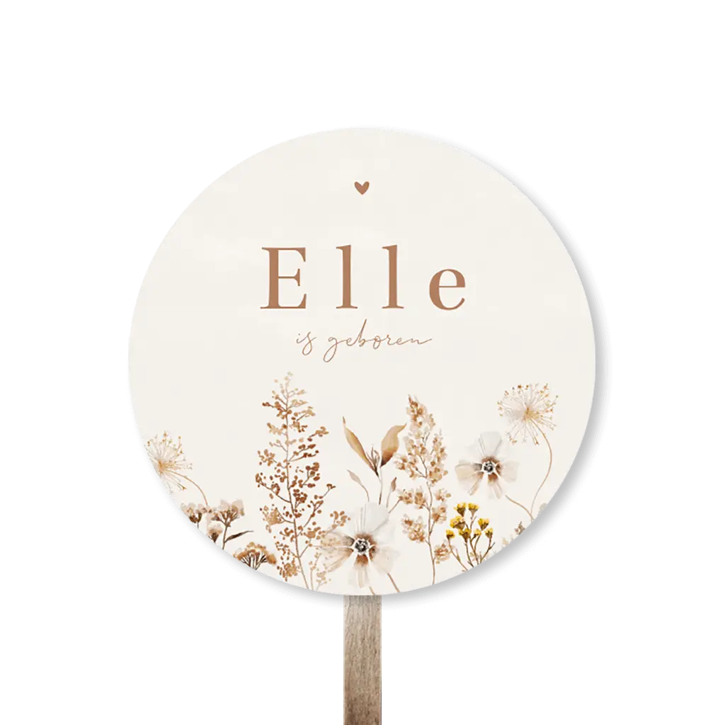 Een lief en hip tuinbord om de geboorte van jouw kindje aan te kondigen. Het bord heeft een beige achtergrond met prachtige veldbloemen. Het bord is gemakkelijk aan te passen in de online editor. Het tuinbord wordt geleverd zonder (houten) paal en bevestigingsmateriaal. Deze kun je zelf vinden bij de bouwmarkt. Je bevestigt het bord met schroeven aan de paal. Advies: Als het hard waait, zet het bord dan even binnen.