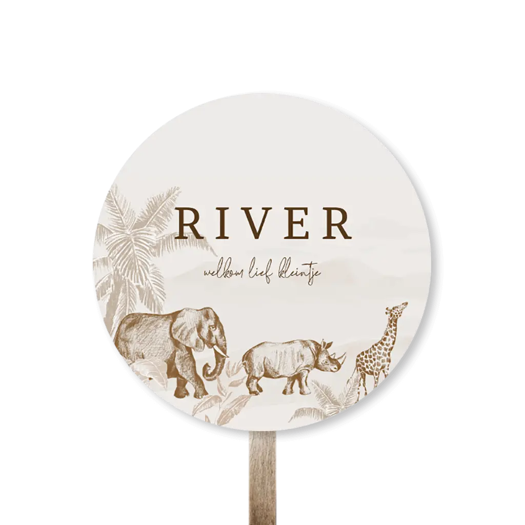 Kondig de geboorte van jullie kleintje aan met dit prachtige ronde tuinbord in beigetinten met handgetekende jungledieren. Wat een prachtig design! Pas het ontwerp gemakkelijk aan in de online editor.