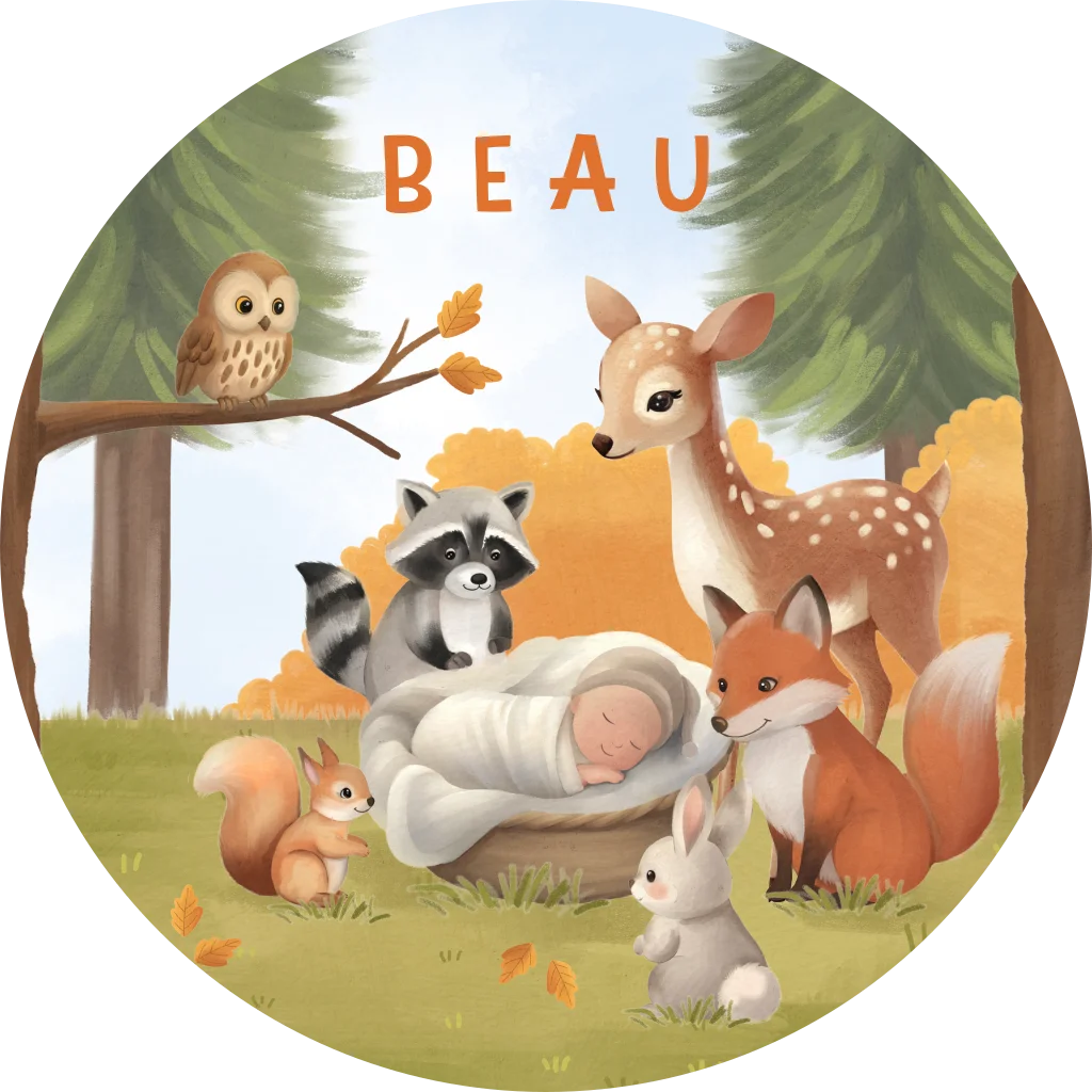 Een leuk tuinbord met een herfst thema voor jullie kindje. Dit bord heeft een ronde basis met daarop schattige dieren in het bos. Pas het ontwerp naar wens aan in onze online editor.