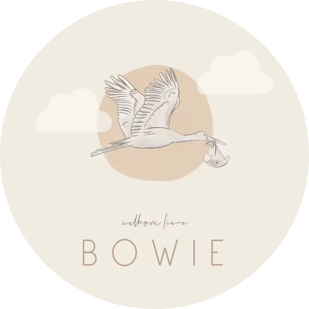 Laat iedereen weten dat je kleintje is geboren met dit vrolijke tuinbord! Het bord heeft een beige achtergrond met een getekende ooievaar met baby en wolkjes erop. Het bord kan helemaal naar wens aangepast worden in onze online editor.