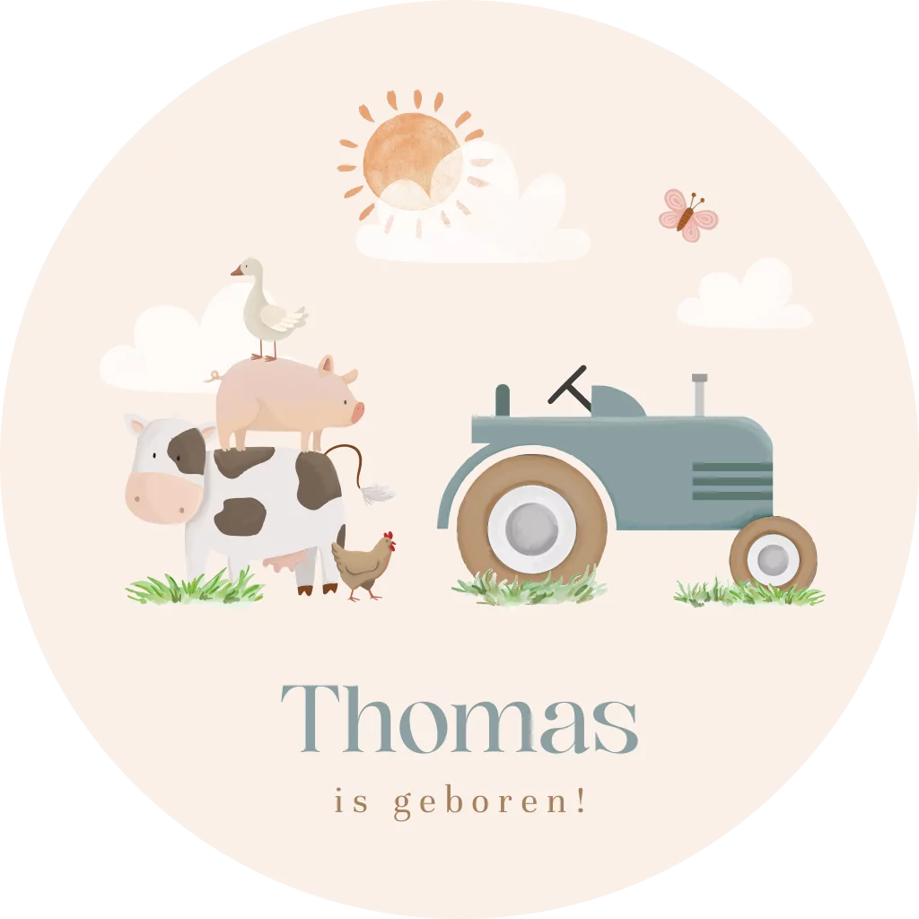 Een vrolijk rond tuinbord voor jouw kindje. Het bord heeft een lichte achtergrond met daarop verschillende vrolijke boerderijdieren. Pas het ontwerp naar wens aan in onze online editor.