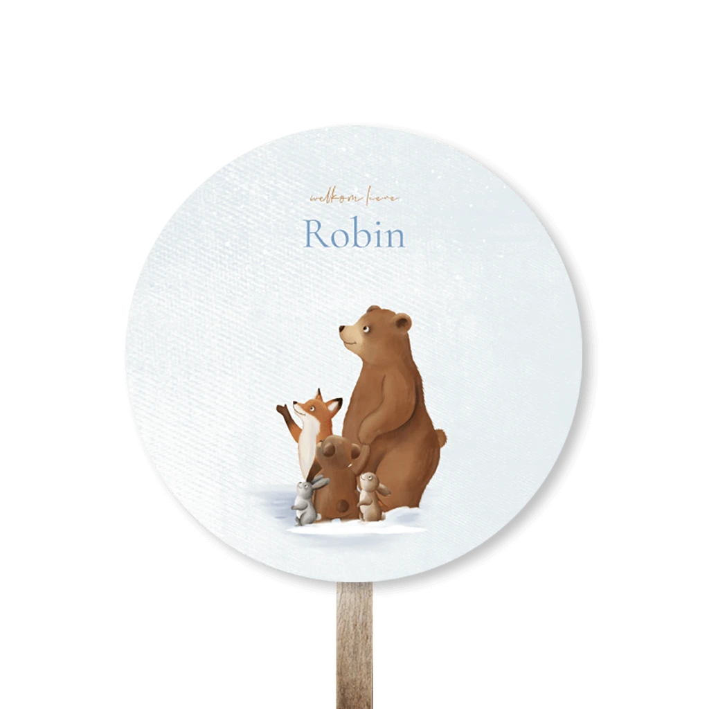 Een leuk tuinbord voor jullie kindje. Dit bord heeft een ronde basis met daarop lieve winterdieren. Pas het ontwerp naar wens aan in onze online editor.
