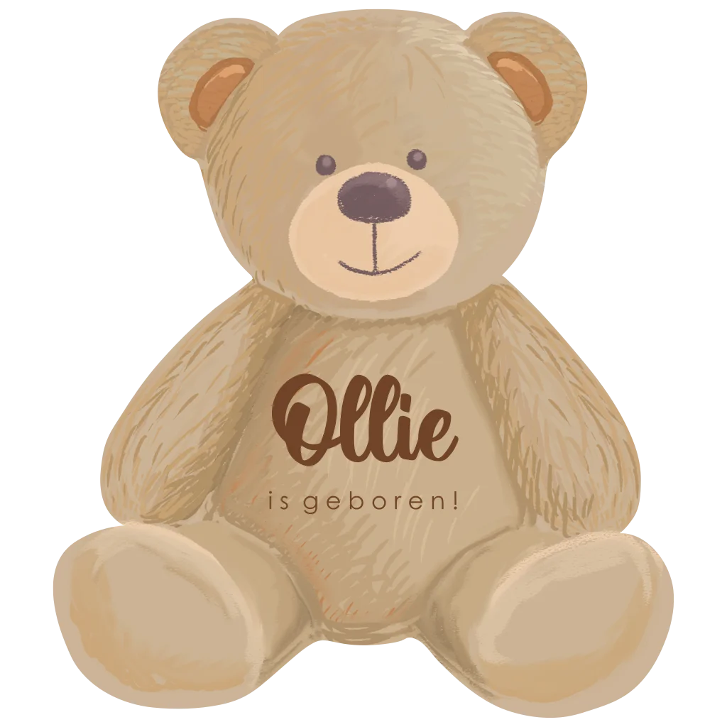 Een lief tuinbord voor jouw kindje. Het bord heeft de vorm van een leuke teddybeer met daarop de naam van jullie kleine. Bewerken kan gemakkelijk in onze editor.