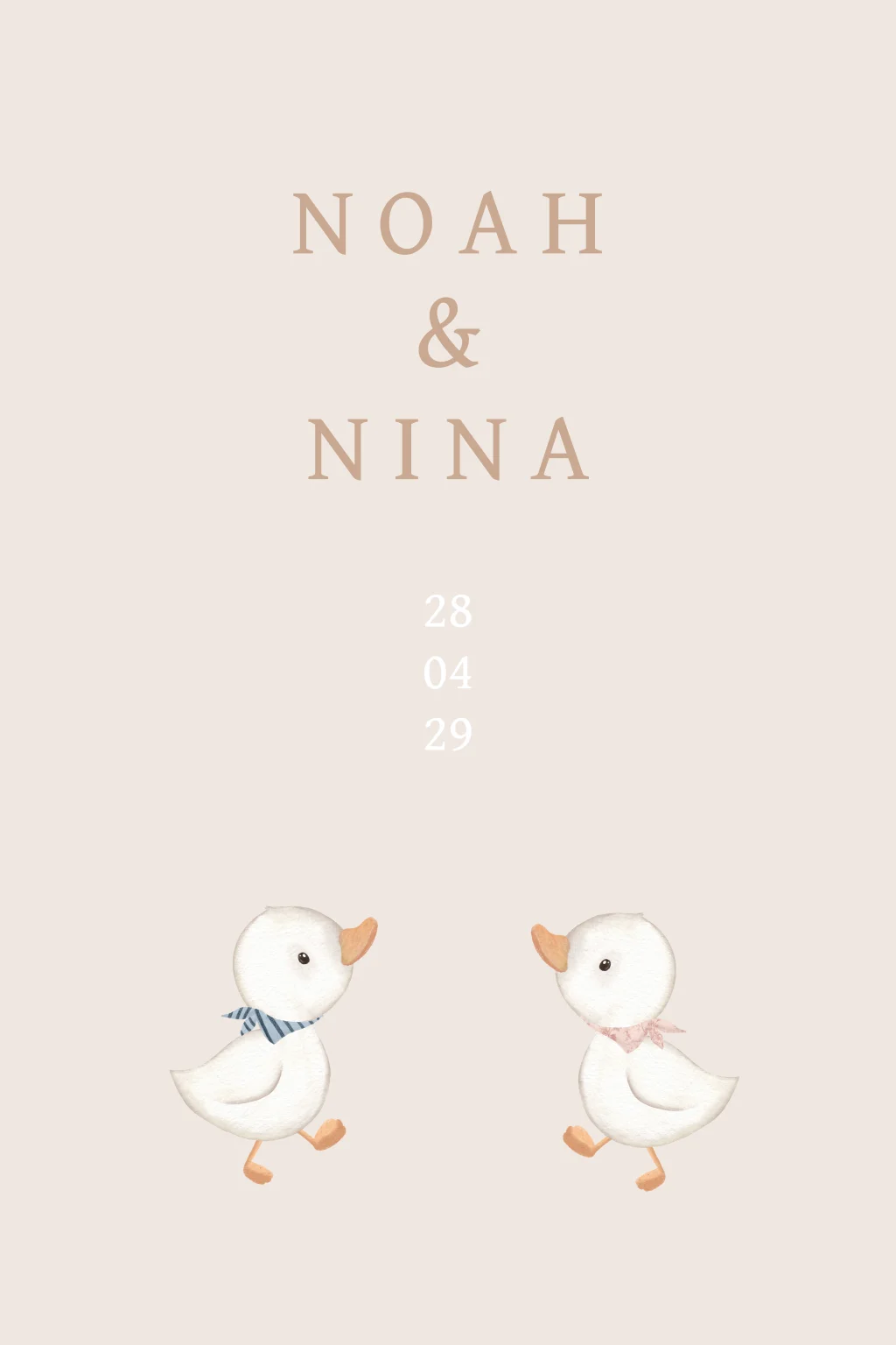 Wat een leuke manier om de geboorte van jullie tweeling aan te kondigen! Dit mooie tuinbord in beigetinten met twee schattige eendjes is de perfecte manier om te laten zien dat jullie kindjes zijn geboren. Het tuinbord wordt geleverd zonder (houten) paal en bevestigingsmateriaal. Deze kun je zelf vinden bij de bouwmarkt. Je bevestigt het bord met schroeven aan de paal. Advies: Als het hard waait, zet het bord dan even binnen.