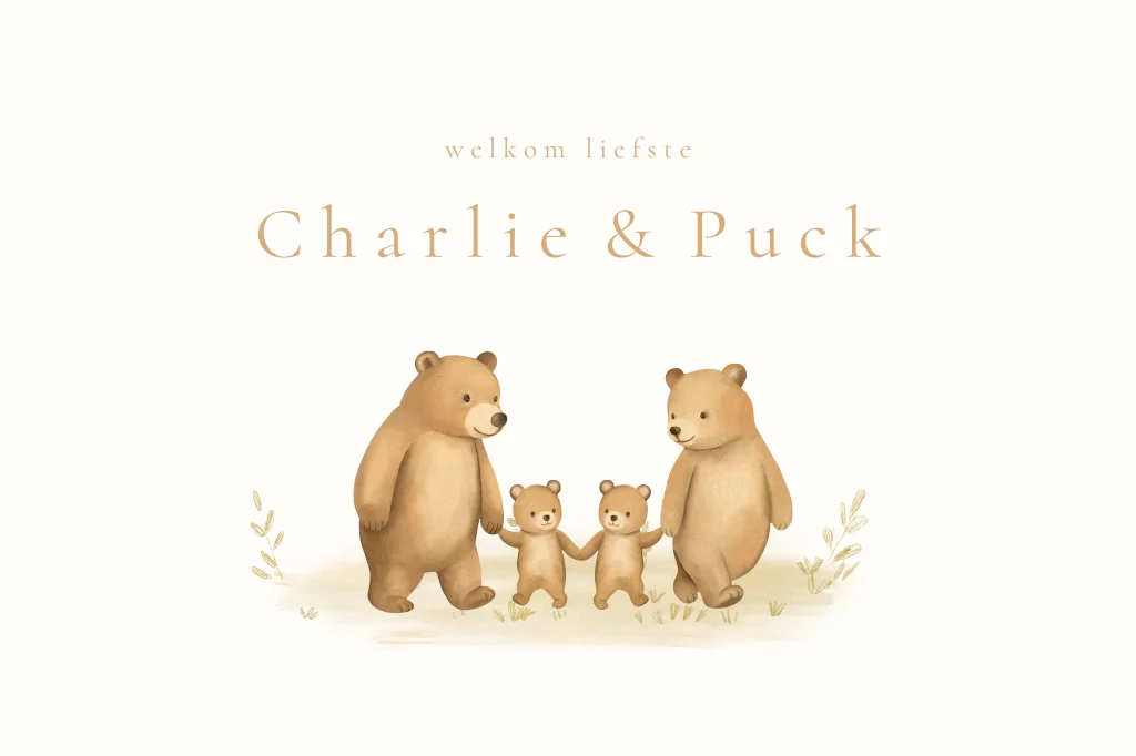 Een lief tuinbord passend bij het geboortekaartje. Het bord heeft beige tinten en centraal staat een lieve berenfamilie. Pas het ontwerp naar wens aan in onze online editor.
