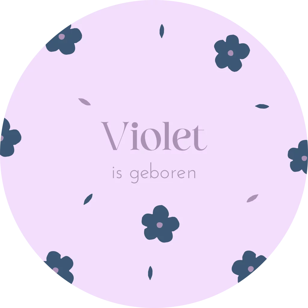Kondig de geboorte van jullie kleintje aan met dit vrolijke tuinbord in de vorm van een cirkel. Het bord is lila met bloemen en is gemakkelijk aan te passen in de online editor.