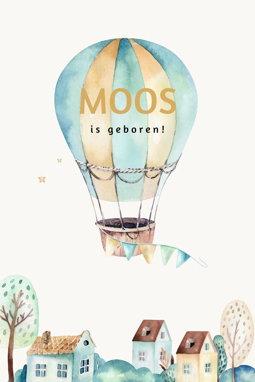 Wat een vrolijk en lief tuinbord! Kondig de geboorte in stijl aan. Dit bord heeft prachtige watercolour illustraties van een luchtballon en huisjes.