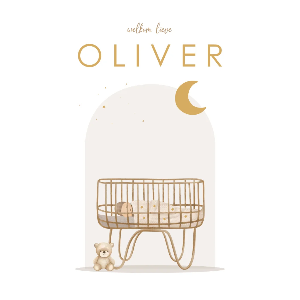 Een schattig tuinbord om de geboorte van jouw kindje aan te kondigen. Het bord heeft een prachtige illustratie van een wiegje en knuffelbeer.
