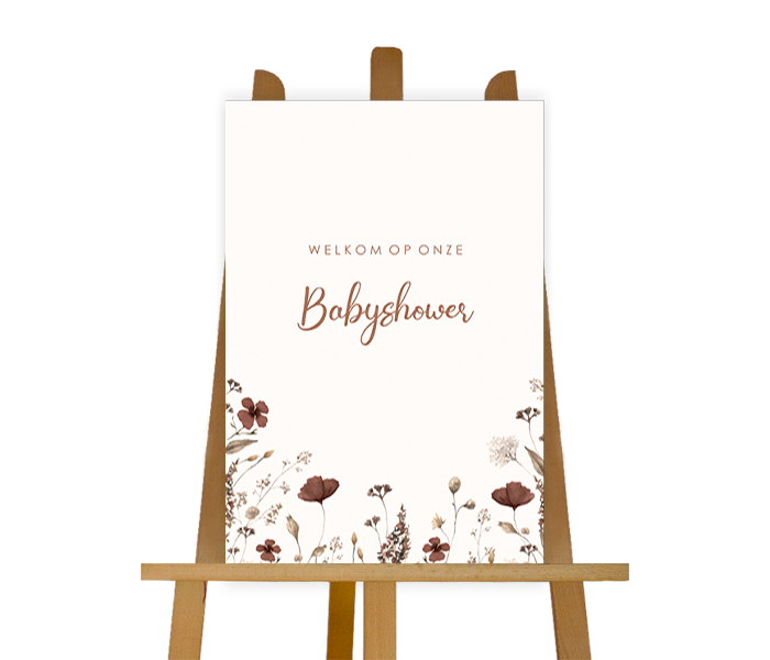 Organiseer jij binnenkort een babyshower? Heet de gasten en aanstaande mama welkom met dit leuke romantische welkomstbord. Het bord heeft een prachtige illustratie van veldbloemen. Pas het ontwerp gemakkelijk aan in onze online editor.