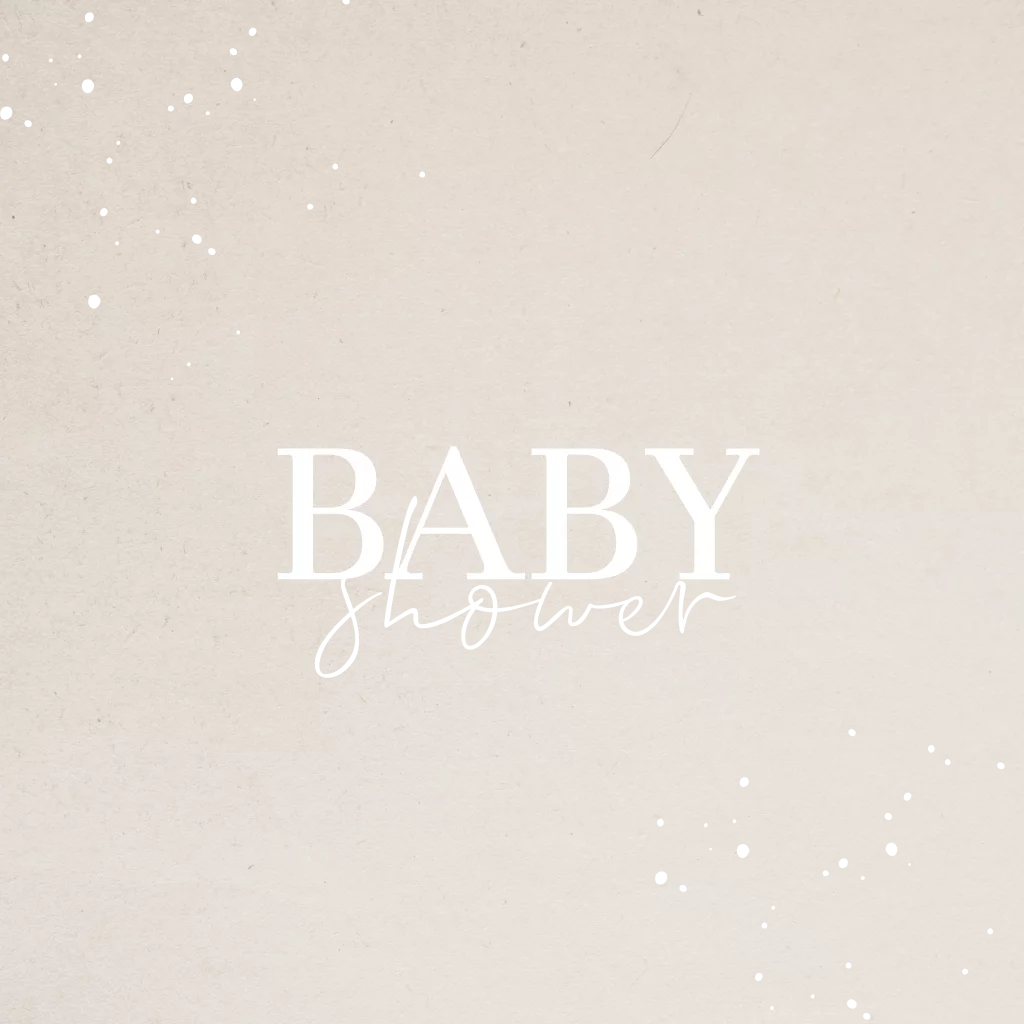 Organiseer jij binnenkort een babyshower? Nodig de gasten uit met deze leuke uitnodiging! Het kaartje heeft een beige structuur achtergrond met daarop goudfolie elementjes. Zo is de tekst en verfspatten gedrukt in goudfolie. Het ontwerp pas je gemakkelijk aan in de online editor.