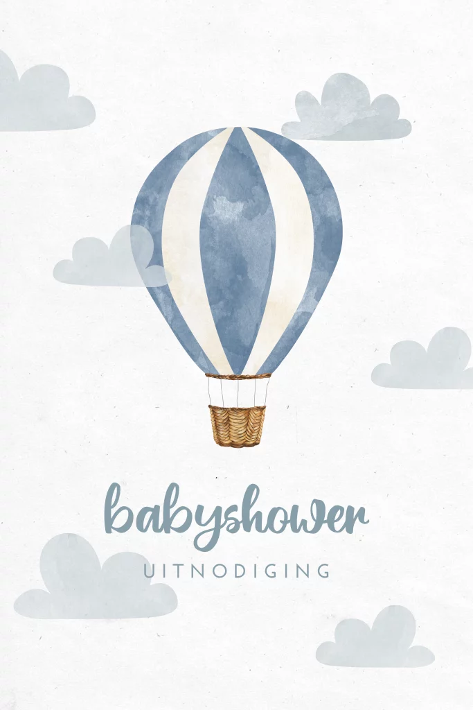 Organiseer jij binnenkort een babyshower? Nodig de gasten uit met deze leuke uitnodiging! Het kaartje heeft een blauwe achtergrond met daarop een schattig rompertje met koperfolie details. Het ontwerp pas je gemakkelijk aan in de online editor.