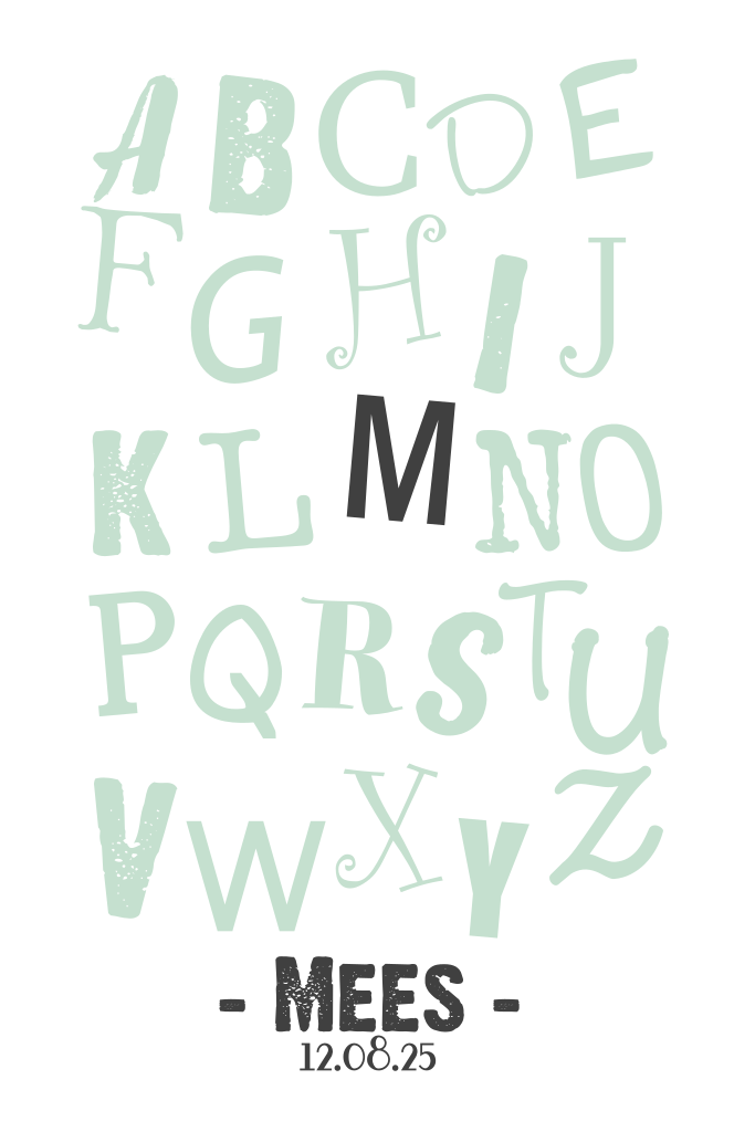 Deze hippe alfabet kaart kun je voor aanpassen voor een jongen en een meisje. Alle letters kun je kleuren naar wens. Tip: druk de kaart ook groot af, dan kun je hem als poster op de babykamer hangen