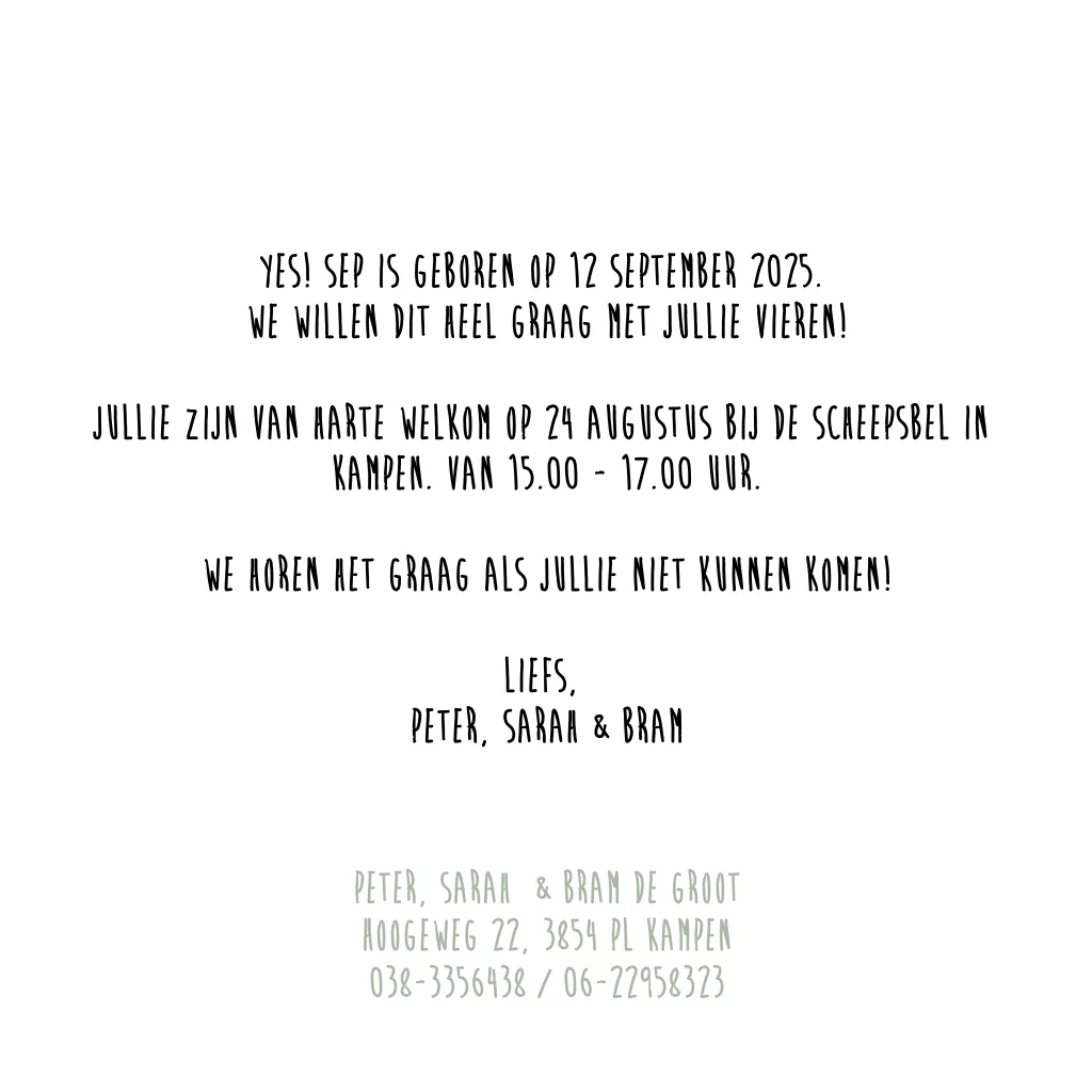 Pas dit kaartje helemaal aan naar wens. De kleuren van de attributen en tekst kun je aanpassen. Upload een mooie foto van jullie eigen kindje en je hebt een super tof kaartje! Bekijk hier het bijpassende geboortekaartje.