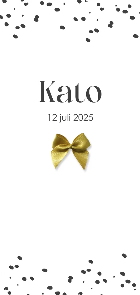 Lief geboortekaartje voor je dochtertje heeft een hip formaat en stoere stippen. Maak dit kaartje uniek met een echt strikje in goudlook.