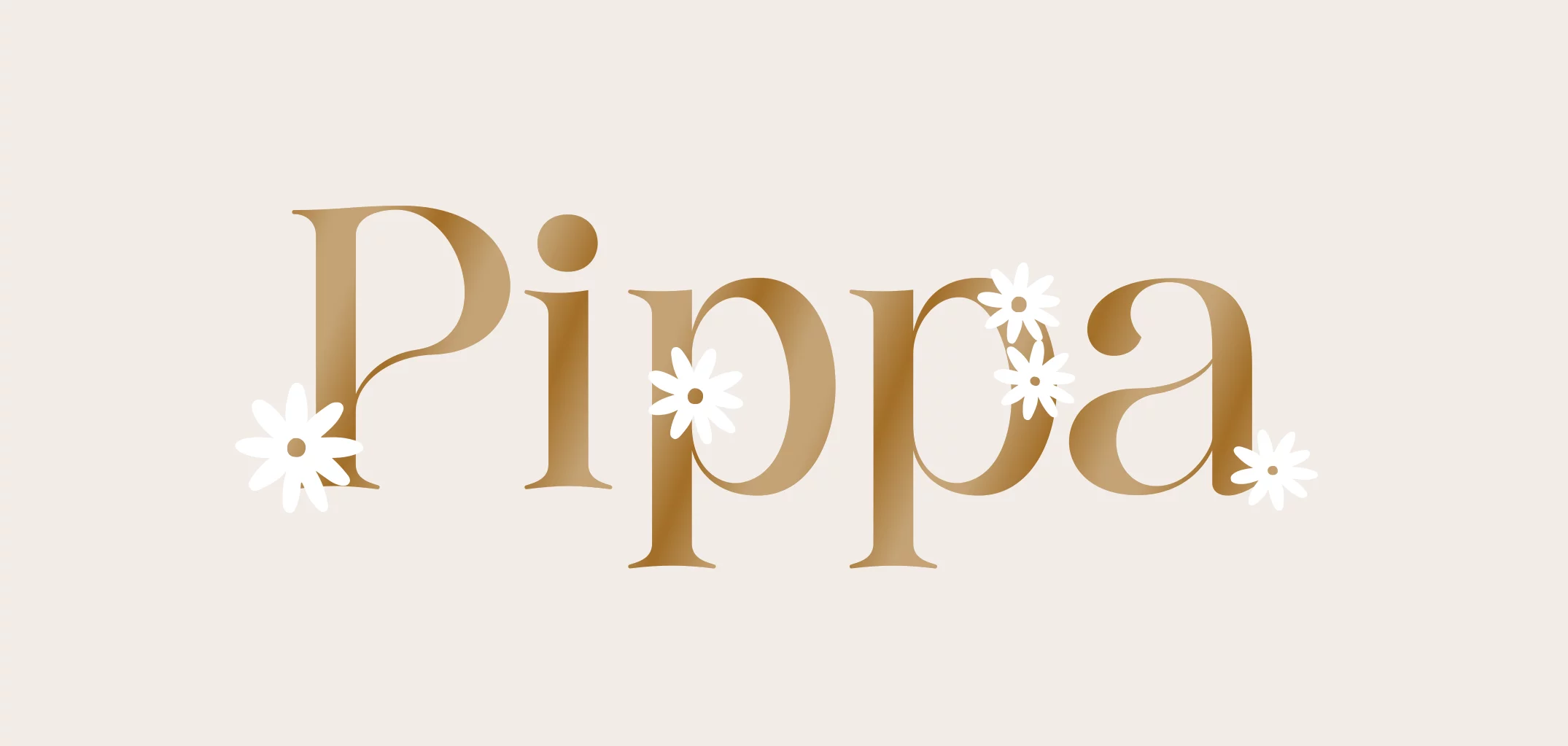 Een lief geboortekaartje voor een meisje met witte madeliefjes. De achtergrond is beige en de naam wordt gedrukt in bruine hoogglans. Pas het ontwerp naar wens aan in onze online editor.