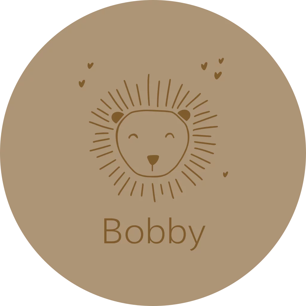 Een lieve sluitsticker bijpassend bij het geboortekaartje van designer ZoJoann. De sluitsticker heeft een bruine achtergrondkleur. Op de sluitsticker staat een lief leeuwtje en de naam van jullie kindje. Laat de sluitsticker matchen bij een bijpassende envelopkleur. Zo is de geboorteaankondiging helemaal compleet. De sluitstickers hebben een diameter van 35 mm en worden geleverd op vellen van 25 stuks.
