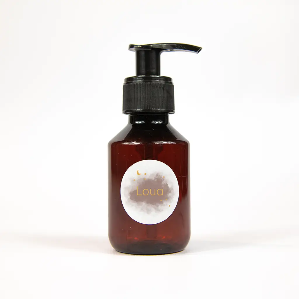 Een schattige naamsticker met de naam van jullie kindje in het midden. De achtergrond is van watercolour in de kleur paars. Om de naam heen staan sterren en een maantje. In onze online editor kan je de sticker naar wens aanpassen en personaliseren.