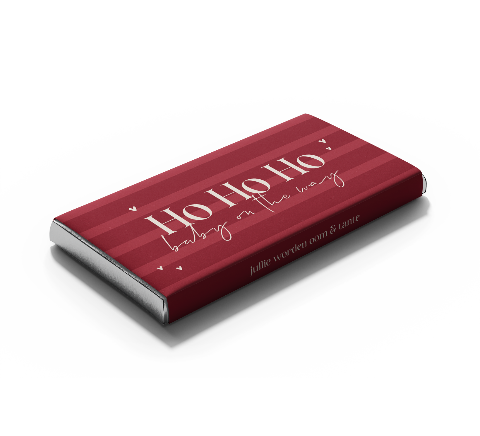 Zwangerschapsaankondiging chocoladereep rood met kerst thema
