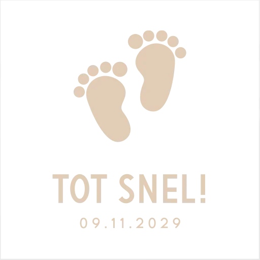 Een unieke manier om jullie zwangerschap aan te kondigen. Dit lieve slabbetje kan je nu zelf personaliseren in onze online editor. Je ziet twee lieve voetjes en de tekst 'Tot snel!'.