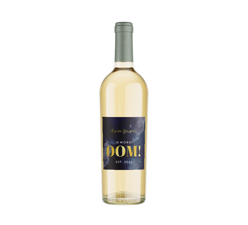Kondig de zwangerschap aan op een originele manier door jouw eigen etiket met goudfolie op een wijnfles te plakken. Pas het etiket gemakkelijk zelf aan in onze editor. Op dit etiket de tekst 'Je wordt oom!' en is naar wens aan te passen. Op één vel staan 5 wijnetiketten.