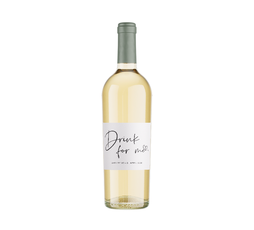 "Drink for me". Kondig jullie zwangerschap op een originele manier aan met dit wijnetiket. Het etiket heeft een witte achtergrond met zwarte opdruk. Pas het etiket helemaal naar wens aan in onze online editor.