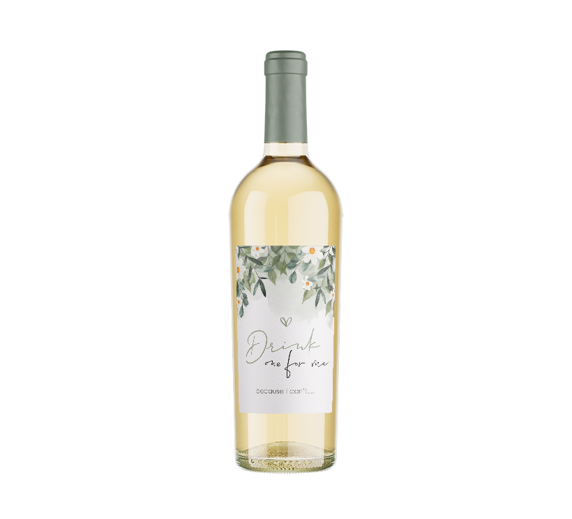 Aankondiging zwangerschap wijnetiket met bloemen - 5 per vel