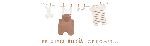Kondig jullie zwangerschap aan met deze houten wijnkist! Op de wijnkist staat een illustratie van een waslijn met kleertjes. Daaronder staat de tekst "er is iets moois op komst".