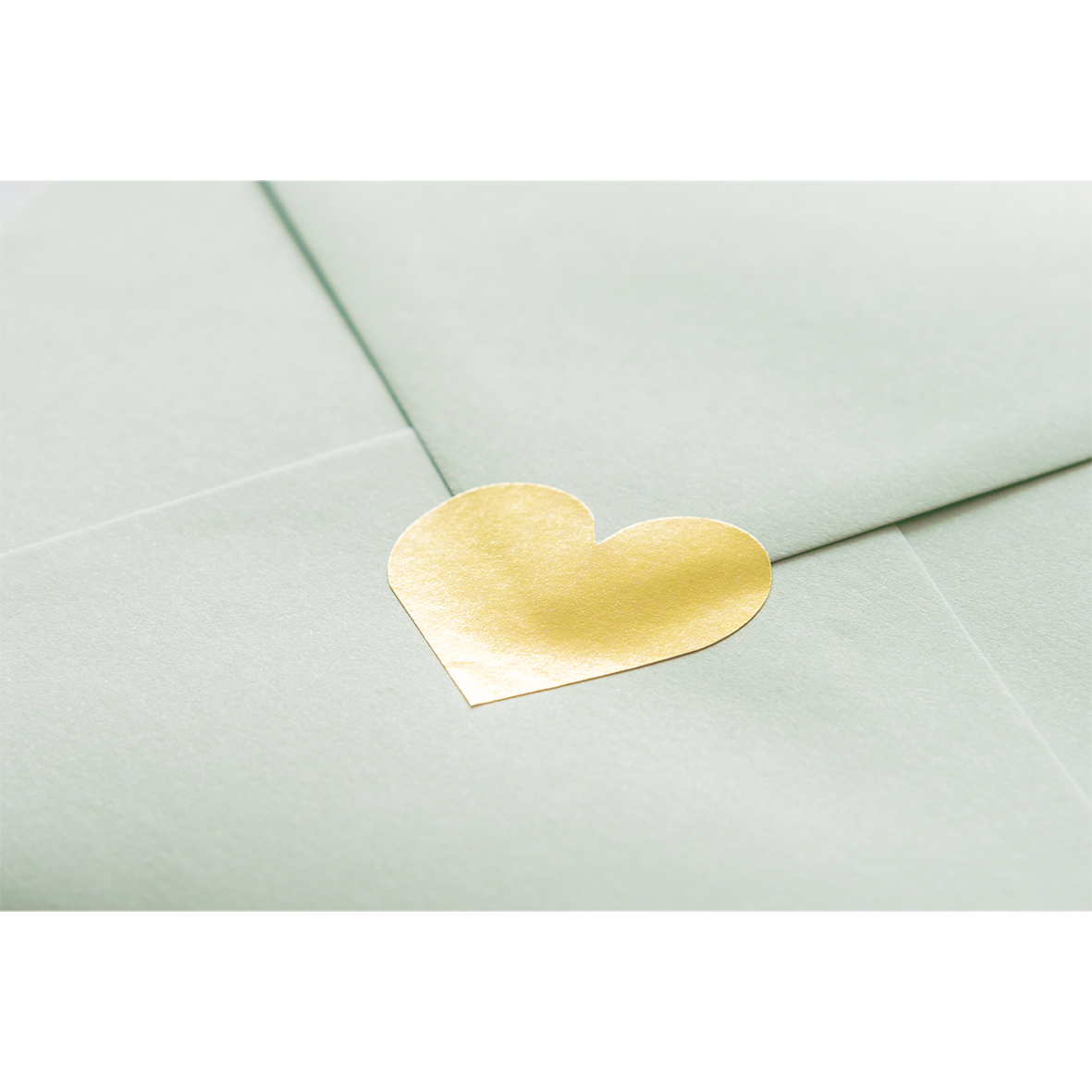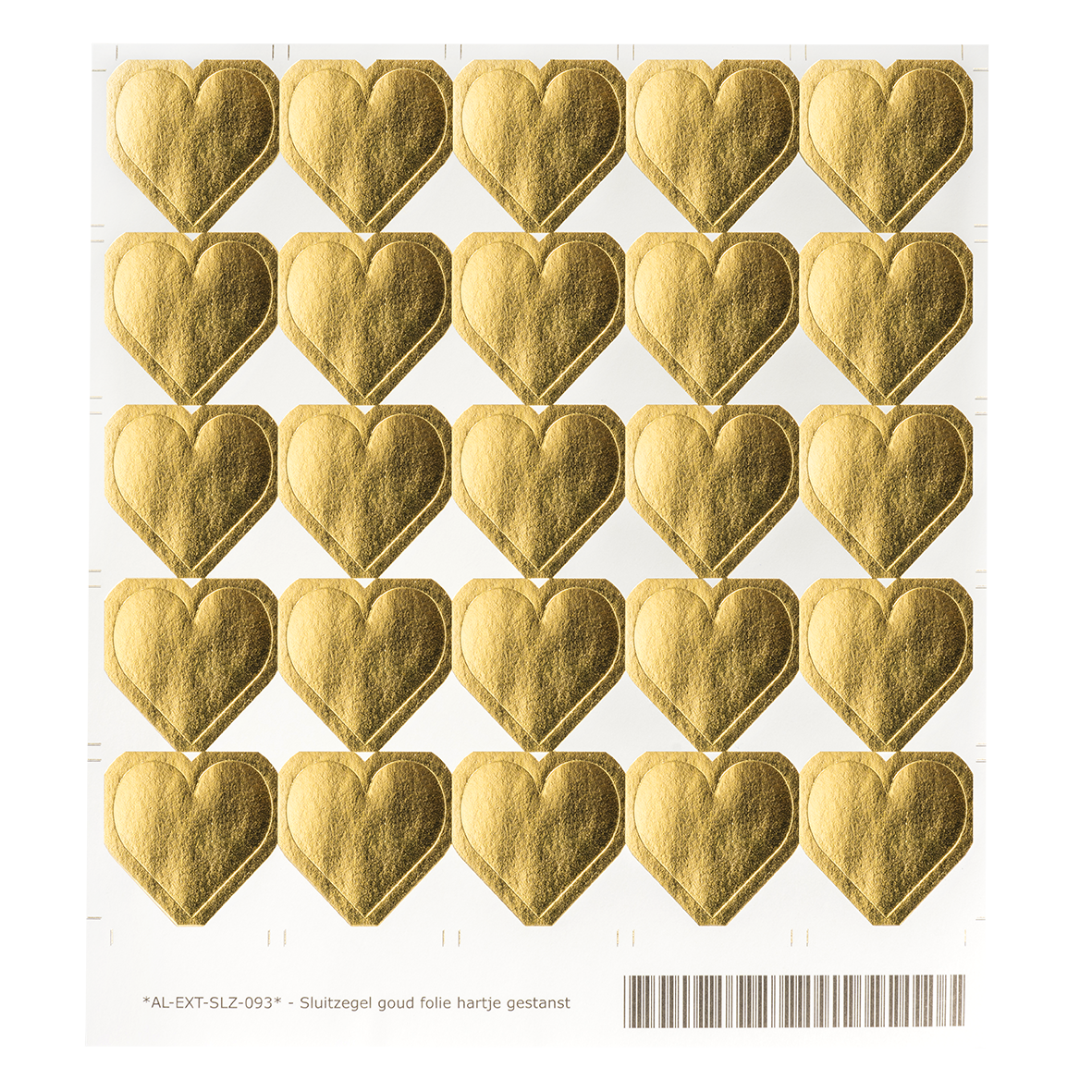 Sluitzegels gestanst in de vorm van een gouden hart. Het hartje maakt deze sluitzegel helemaal af.